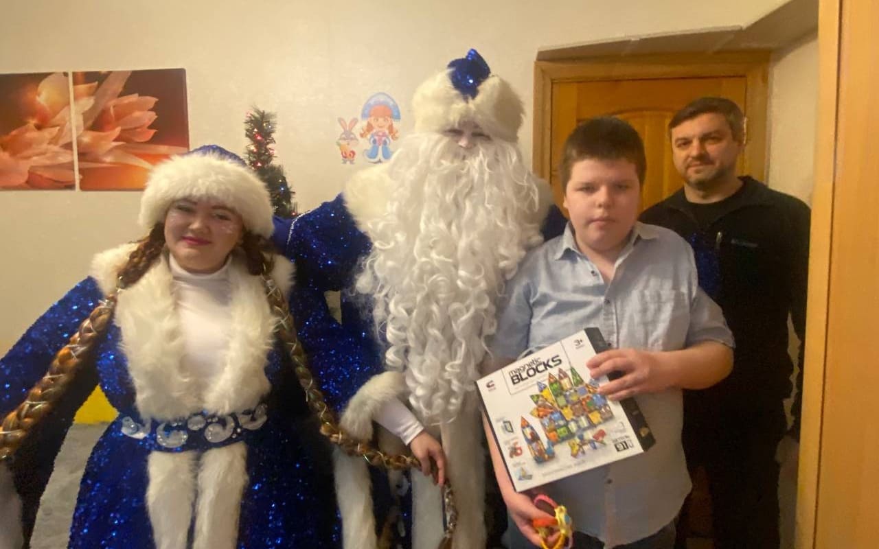 В преддверии новогодних праздников Дед Мороз со Снегурочкой воплотили мечту Савелия в жизнь, вручив ему сразу два подарка: удобное кресло-грушу и увлекательный магнитный конструктор.