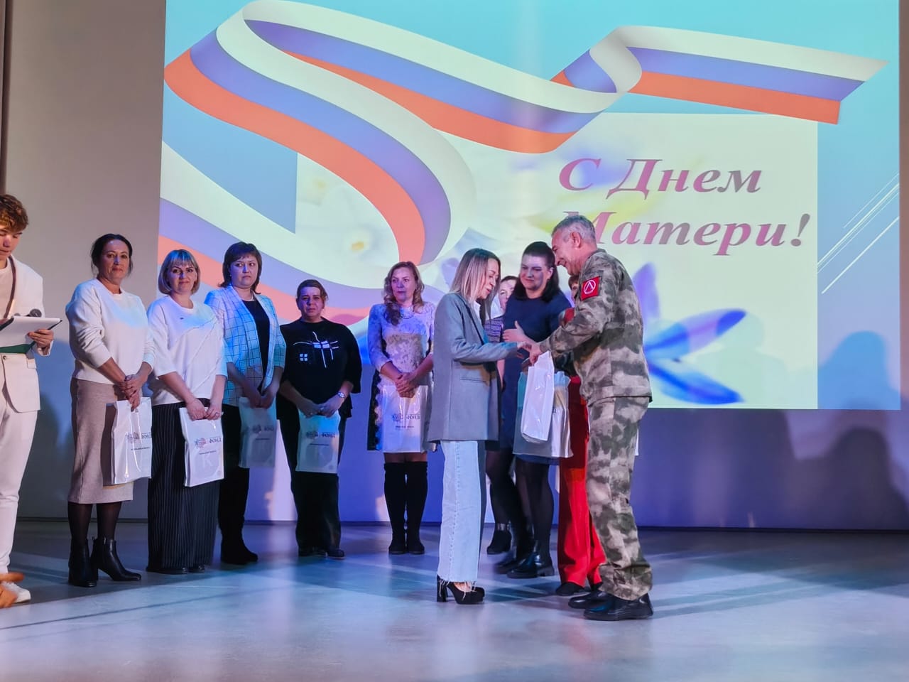 Александр Околелов, участник СВО и заместитель директора Центра «Память» Пост №1 Барнаула, от лица организаторов поздравил участниц фестиваля, а благотворительный фонд «Мой Алтай» преподнес женщинам подарочные наборы.